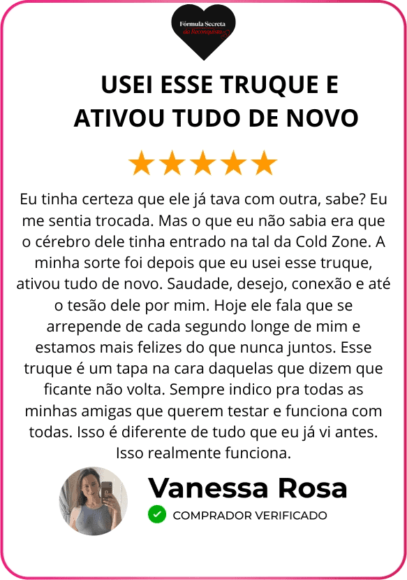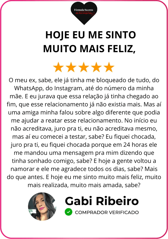 Viu como é Fácil? Logo após você receberá a confirmação do seu pedido no e-mail escolhido e o acesso á Fórmula Secreta da Reconquista. Não perca mais tempo, clique agora no botão abaixo e adquira seu acesso as 45 Frases NeuroEmocionais secretas.